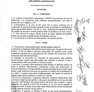È costituita l'Associazione denominata "APPLET (Associazione Privata Per l'Efficienza e la Trasparenza delle pubbliche amministrazioni)